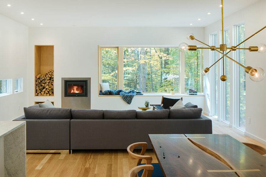 TinkTable is a modern dining room table specifically designed for TinkerBox. The design highlights the natural beauty of local NY Walnut slabs in a refined and elegant way that suits the cozy yet modern character of the home.
