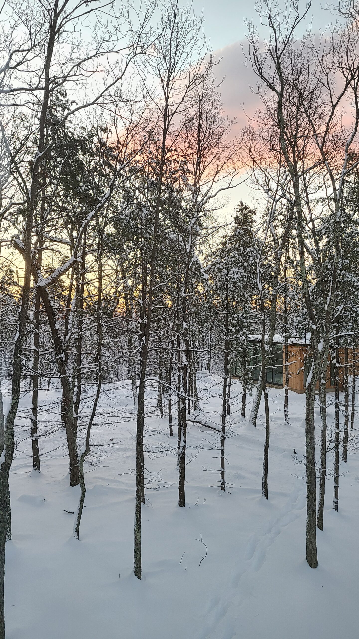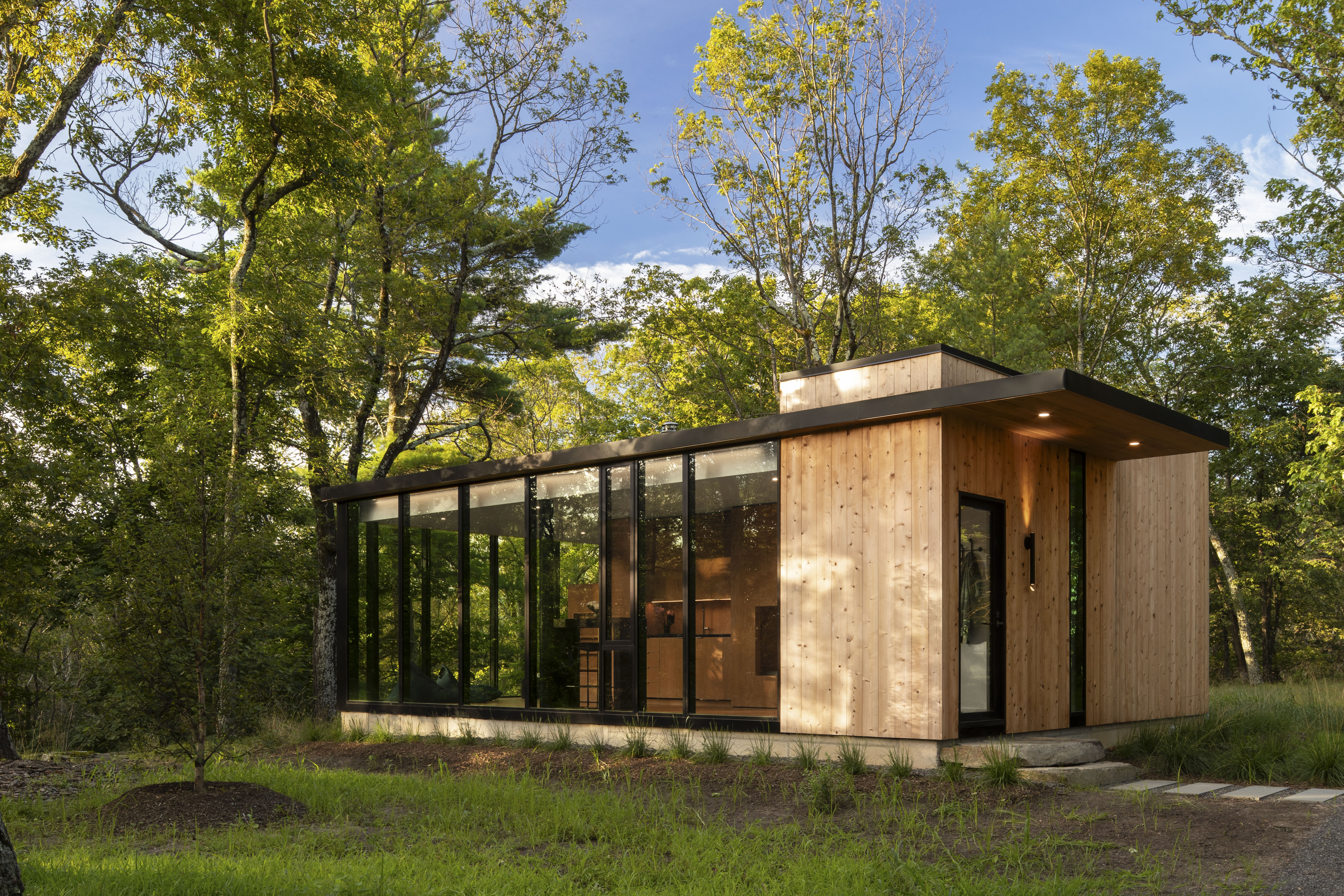 The glass walls of the Bunkhouse reflect the changing seasons and create a true “treehouse” feeling from the interior!