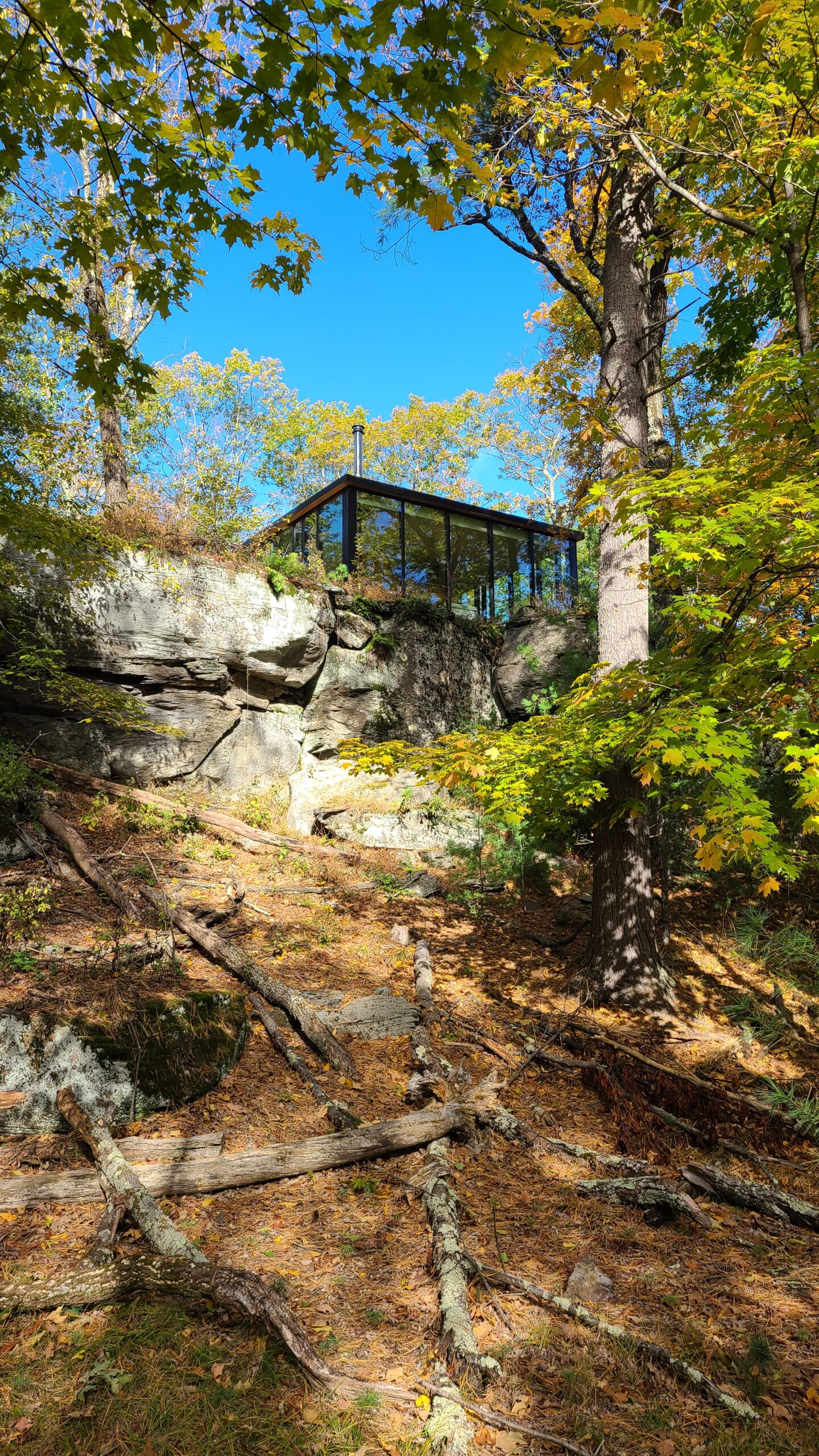 GLASS ENCLOSED GUESTHOUSE AT THE EDGE OF A CLIFF