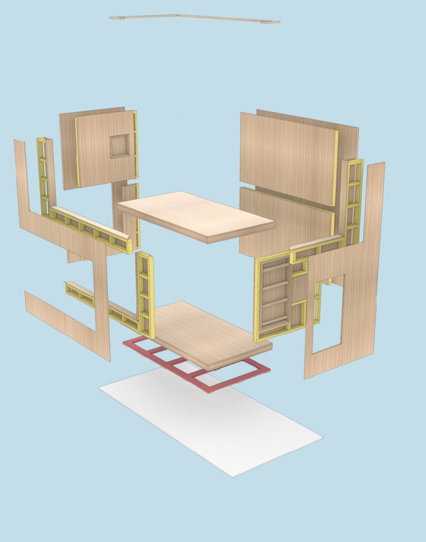 The construction of the Bunkhouse came together quite quickly, but figuring out the details and construction of the central bunk volume was fairly tricky! Vernacular Design Co. engineered a skin structure for the bunks using a CNC machine that allowed each piece to come together with great precision, making site installation significantly easier. To create the thin roof profile, we worked some magic with dropped structure and steel posts.