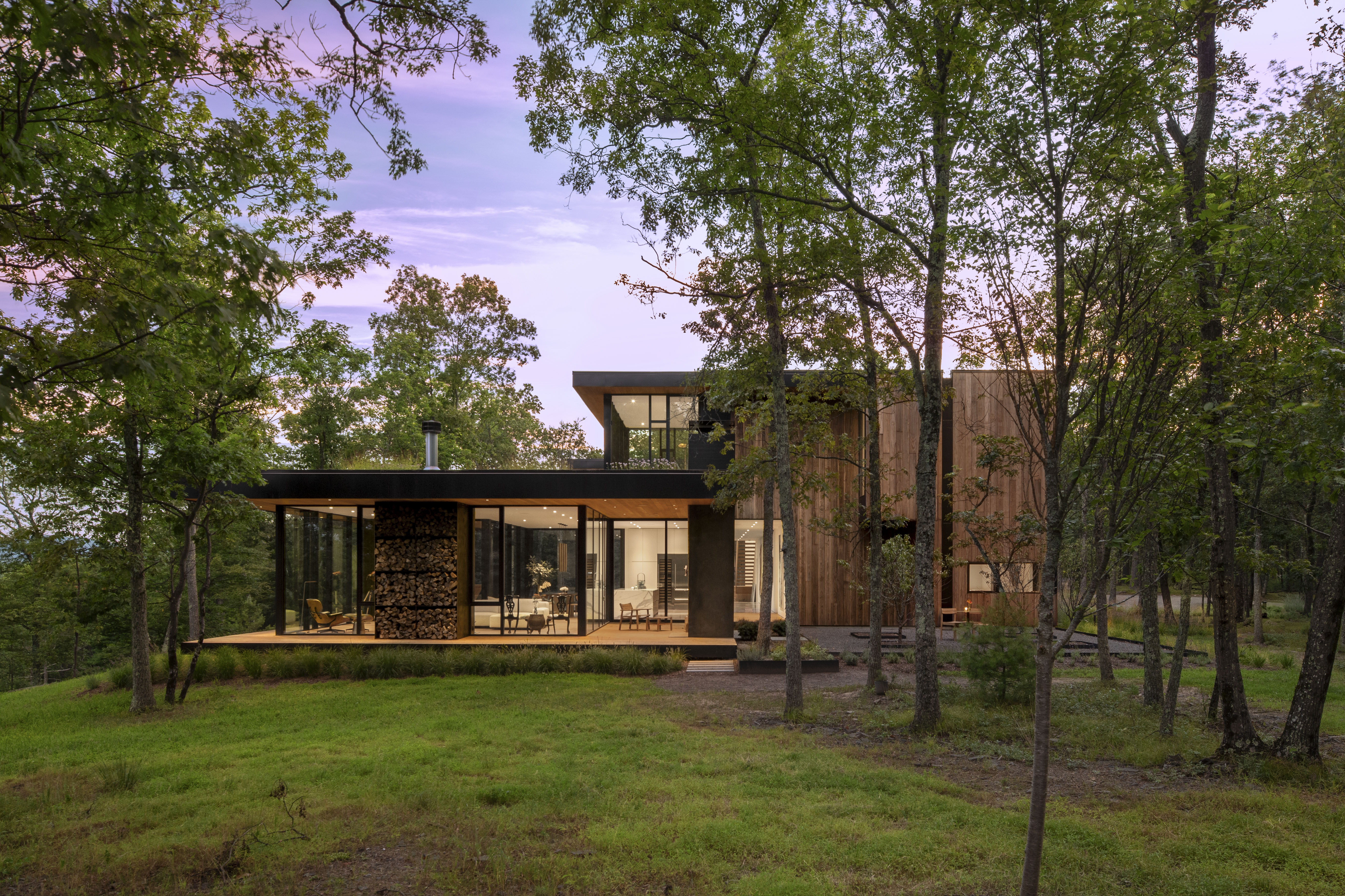 Nestled in the foothills of the Catskill Mountains, VIA43 is a private residence, architecture studio, and bunkhouse that seamlessly blends living, working, and hosting under one roof. The project began with a single anchoring element—an old stone firepit with sweeping mountain views—and grew into a long, low home that settles into its landscape rather than imposing upon it.